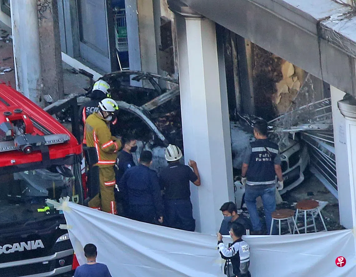 去年2月13日(大年初二)清晨5时40分左右,一辆白色宝马轿车疑因超速失控,撞入丹戎巴葛路一间店屋后起火狂烧,车上五人当场命丧火海。