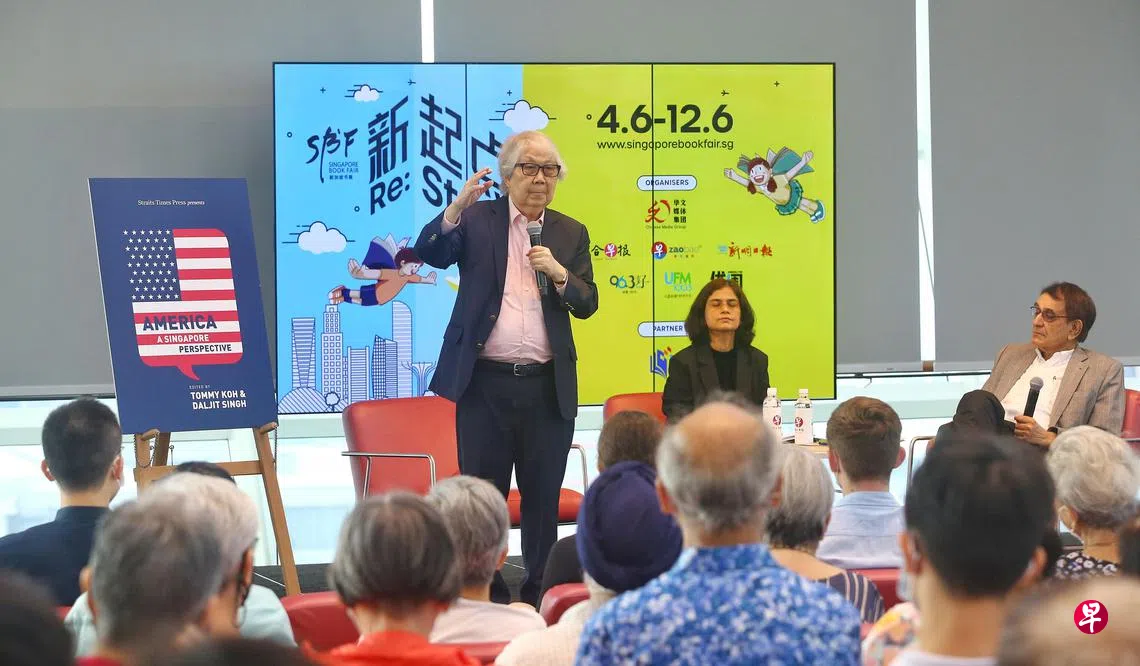 许通美及尤索夫伊萨东南亚研究院访问高级研究员达尔吉星(Daljit Singh),昨天出席在国家图书馆举行的《美国:新加坡视角》(America: A Singapore Perspective)书籍分享会。