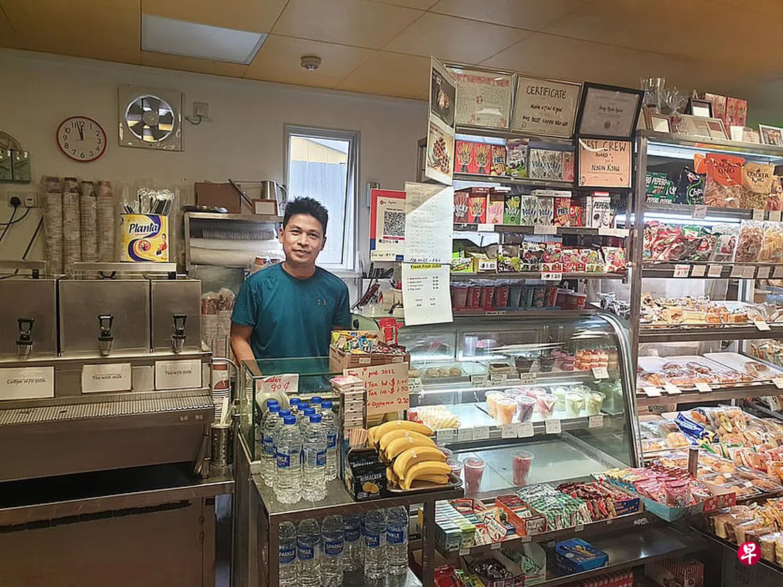 来自缅甸的昂迎觉(33岁),在这间茶水档当助手已将近10年。熟悉档口的人都知道,昂迎觉逢人就称一声“哥”(bro)或“姐”(sis)。不管是跟谁对话,他都习惯在句末再叫上一声“bro”。为此,有些学生还亲切称呼他“酷角落小哥”。