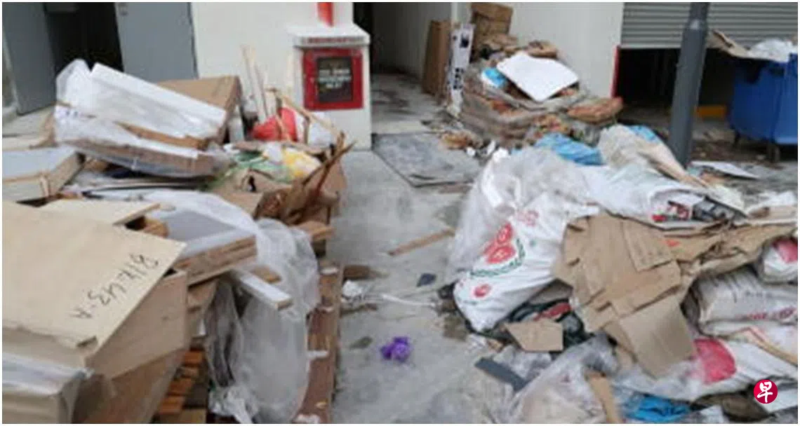 承包商被指无故撤走垃圾集装箱,新建组屋底层成垃圾场,居民刚搬入新居,就担忧火患或伊蚊滋生的问题。