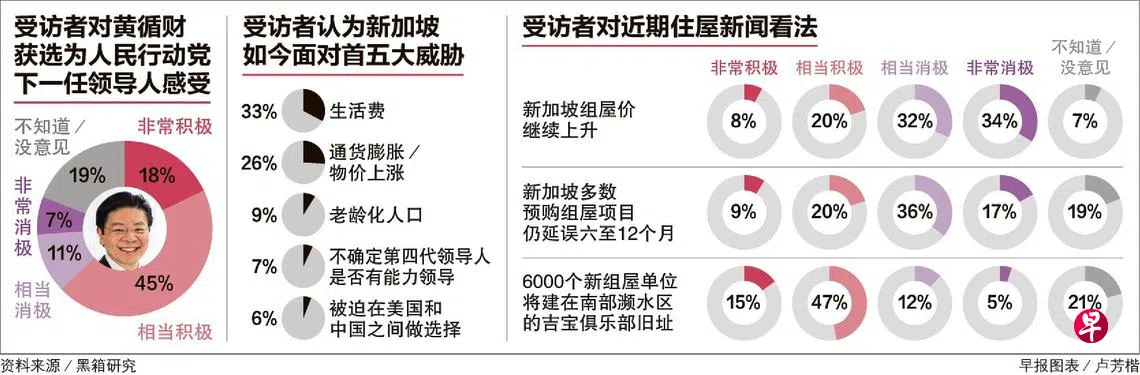 本地咨询公司黑箱研究(Blackbox Research)今年5月中访问了758名年龄在20岁及以上的新加坡人,18%并不看好黄循财当党领导和总理。剩余19%表示不知道或没意见。