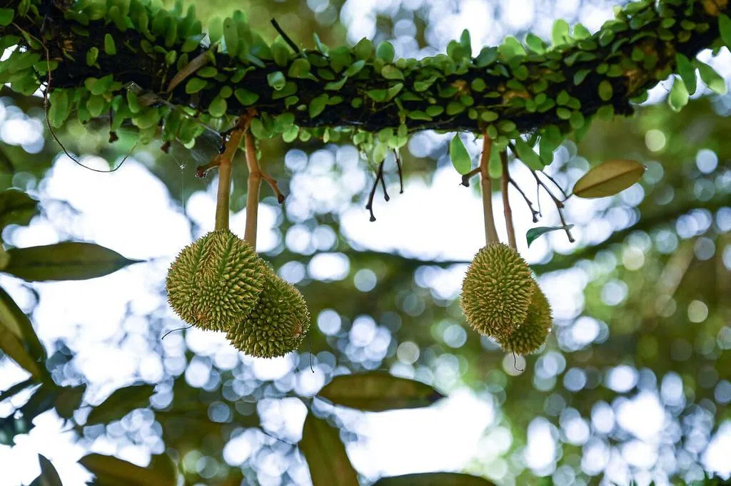 “227 Katong Durian”老板王耀麟(58岁)向《新明日报》说:“三周前柔州多雨水,导致榴梿闷在树上,这一两周天气热起来,榴梿就开始掉了。”