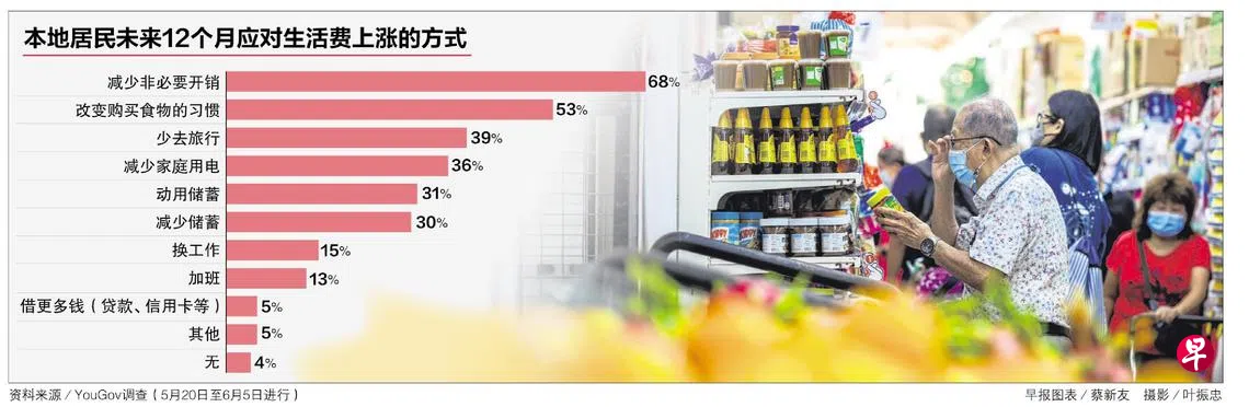 在上述调查中,当被问及准备如何应对物价上涨时,近七成的受访者表示将减少非必要开销如外出用餐等,其他途径包括改变购买食品的习惯(53%)、少去旅行(39%)以及减少家庭用电(36%)。每三人就有一人准备动用储蓄或减少储蓄;每七人就有一人要换工作或加班。
