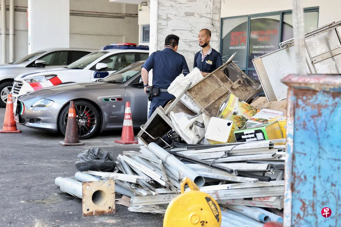 回收商被指把杂物和废铁堆积在店外四周,铁钉散落满地,叉车在店外倒着走,一次甚至有铁管从叉车杂物堆上掉落,砸中停泊在隔壁的玛莎拉蒂名车,毗邻商家气得报警。