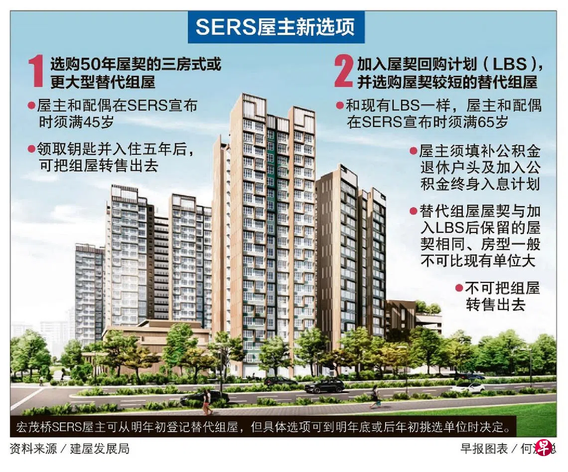 建屋局星期六(7月2日)发文告说,为满足选择性整体重建计划(SERS)屋主的多元住房需求,建屋局将为这些屋主提供上述两个额外选项,帮助他们购买替代组屋。