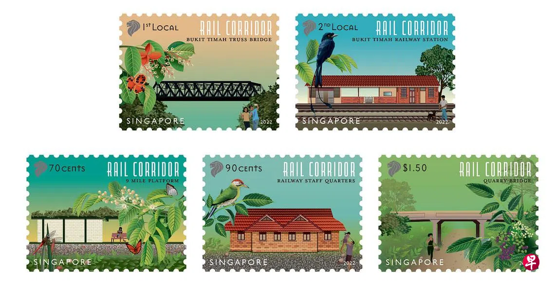 这套邮票展现了24公里长的铁道走廊中的标志性建筑,以及公众可在铁道沿途看到的动植物。