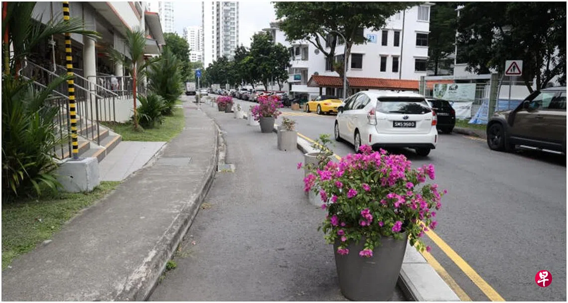 陆路交通管理局自3月开始,展开为期半年的社区绿化试验计划,将英云街、林烈街和成保路的停车位改成人行步道,移来上百盆大小不一的盆栽,打造宽敞的步行和绿色社区空间。
