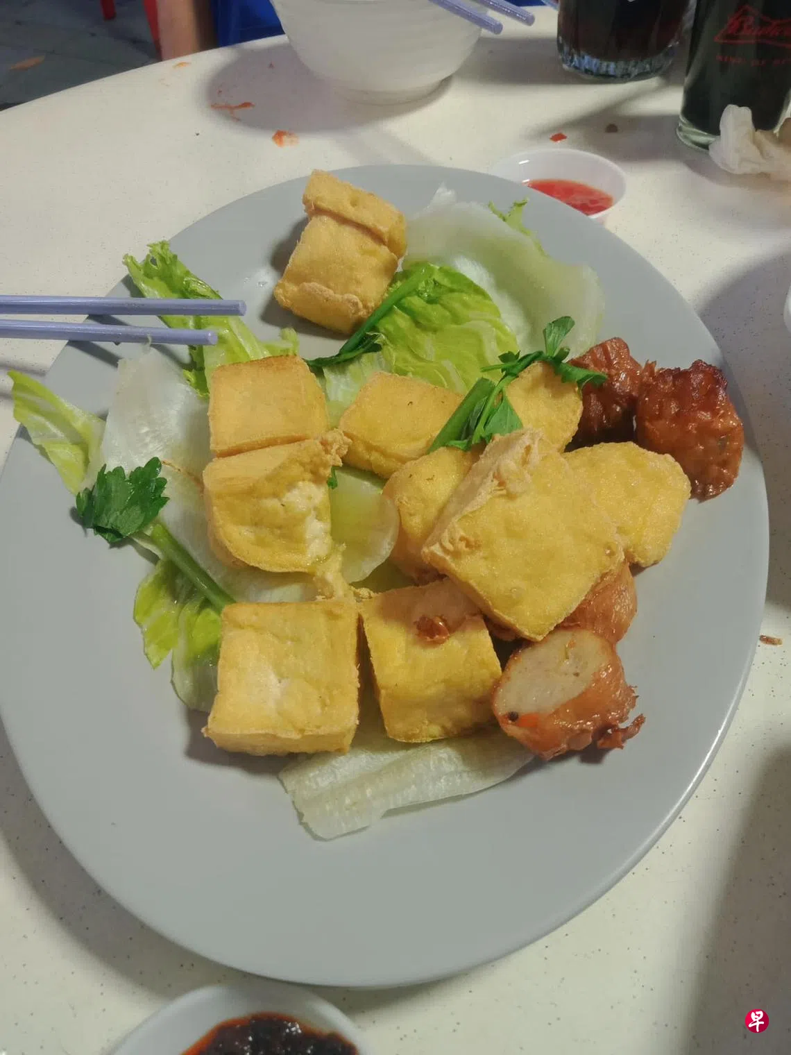 食客许先生(47岁,司机)向《新明日报》申诉,7月6日跟五名友人到兀兰13街第167座组屋楼下的咖啡店喝酒聊天时,友人向摊贩购买一盘小吃,却发现四块豆干跟三条五香的拼盘要价15元,令他直呼太贵。