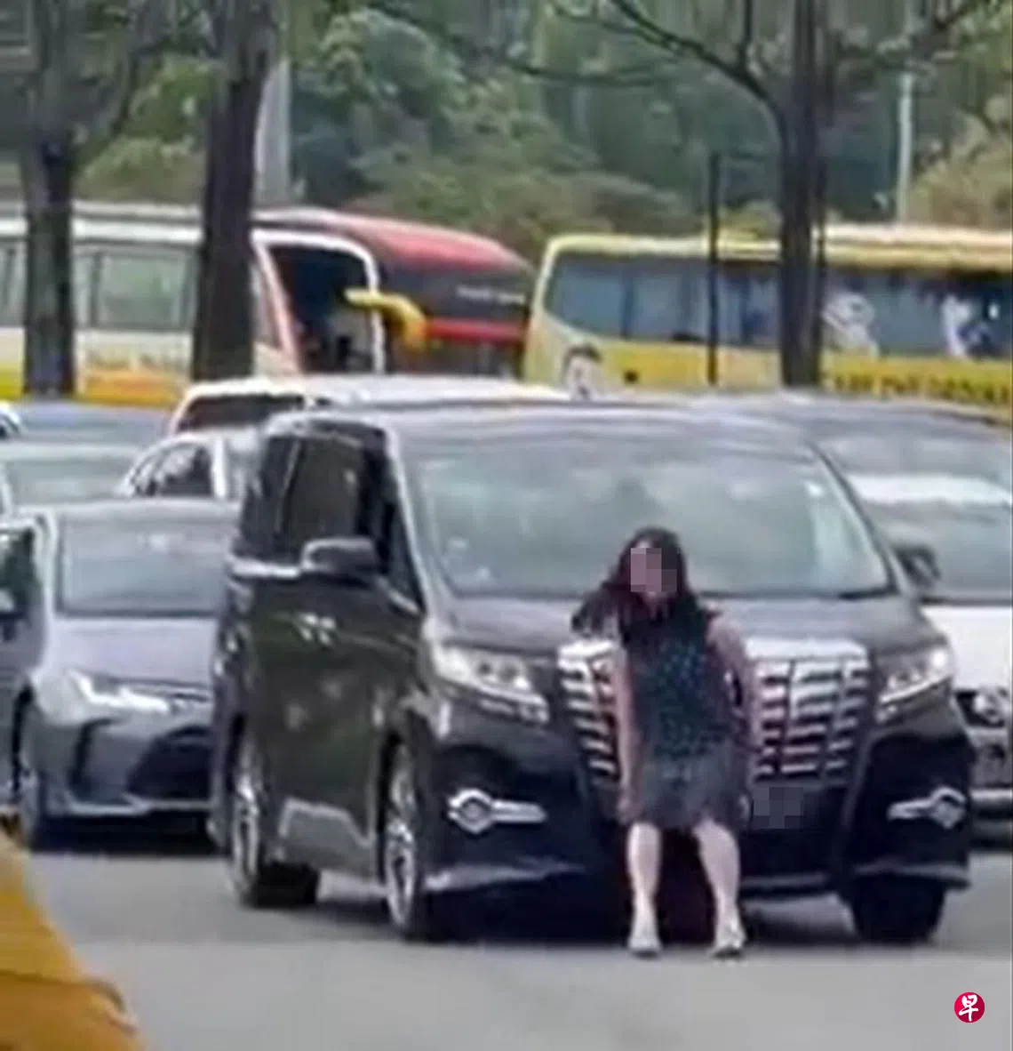 一名女子星期六(7月9日)早上约9时30分,疑不满黑色丰田多用途汽车切换车道时,跟儿子驾驶的红色起亚汽车发生擦撞,于是下车用肉身阻挡多用途汽车。