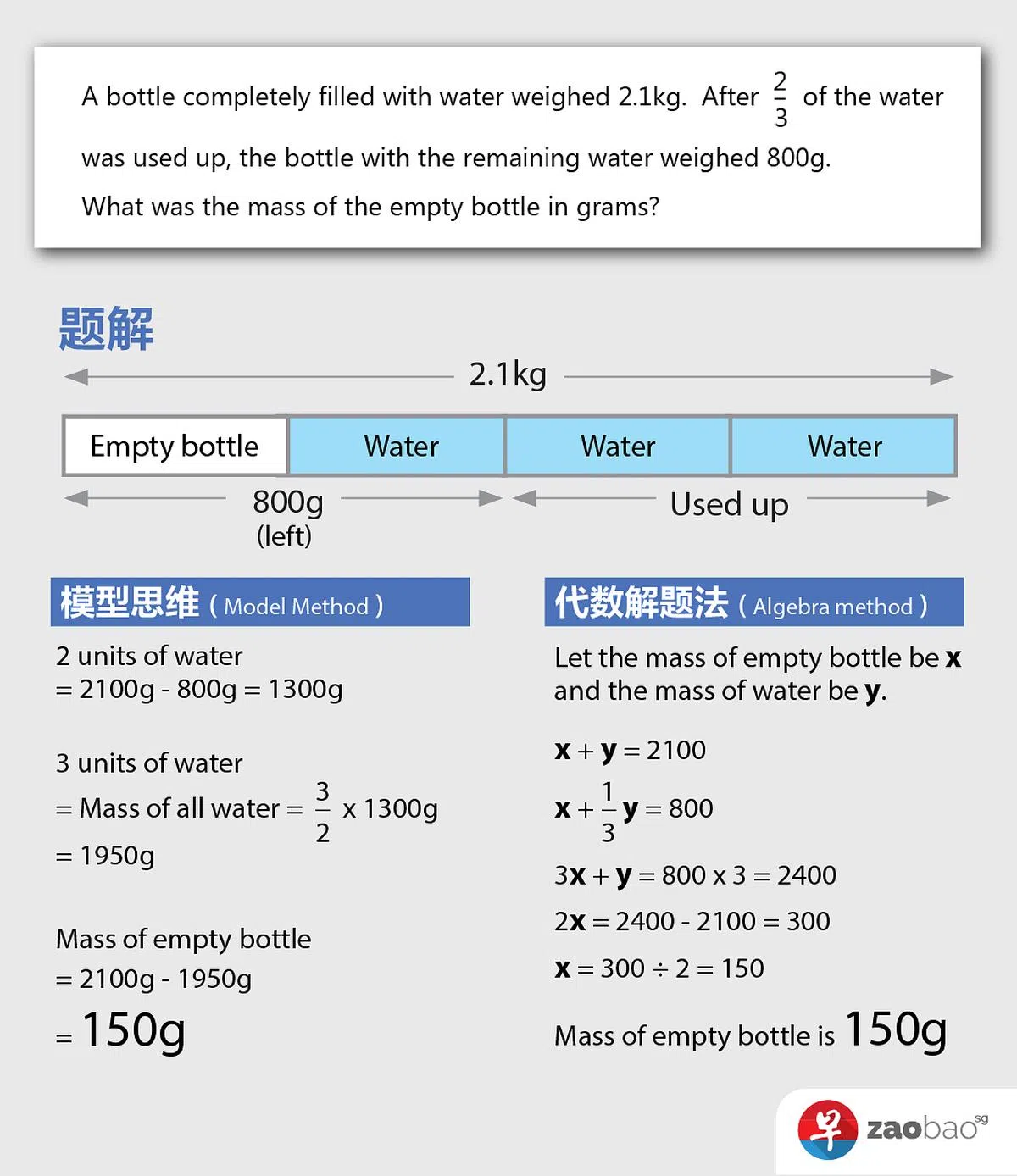 5. 我认为利用“模型思维”(Model Method)来解答数学题比代数(algebra)更难。更何况,“模型解题”在小学之后就用不上了。为什么学校还是坚持这种教学法?