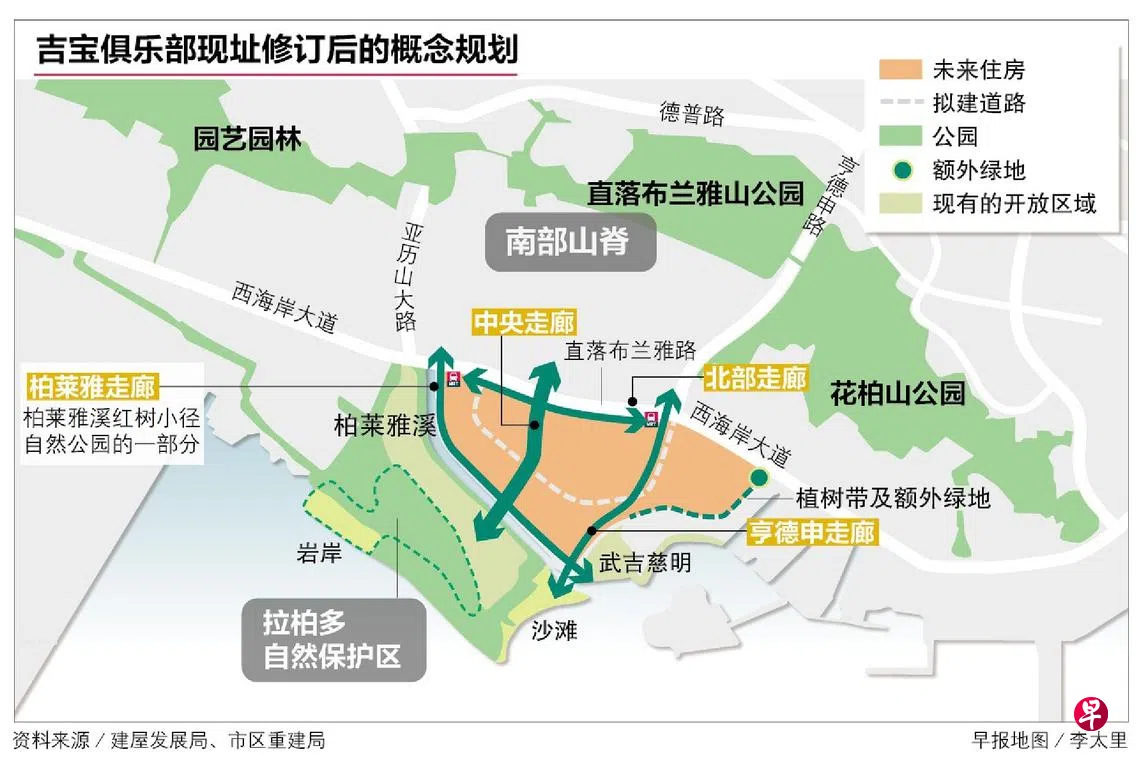 吉宝俱乐部现址的住宅发展规划修订后,将增设绿地,加强生态连接。由于这幅地段具有历史和考古价值,当局也会在今年内展开考古研究,若发现文物,会在住宅工程动工前先挖掘出来。
