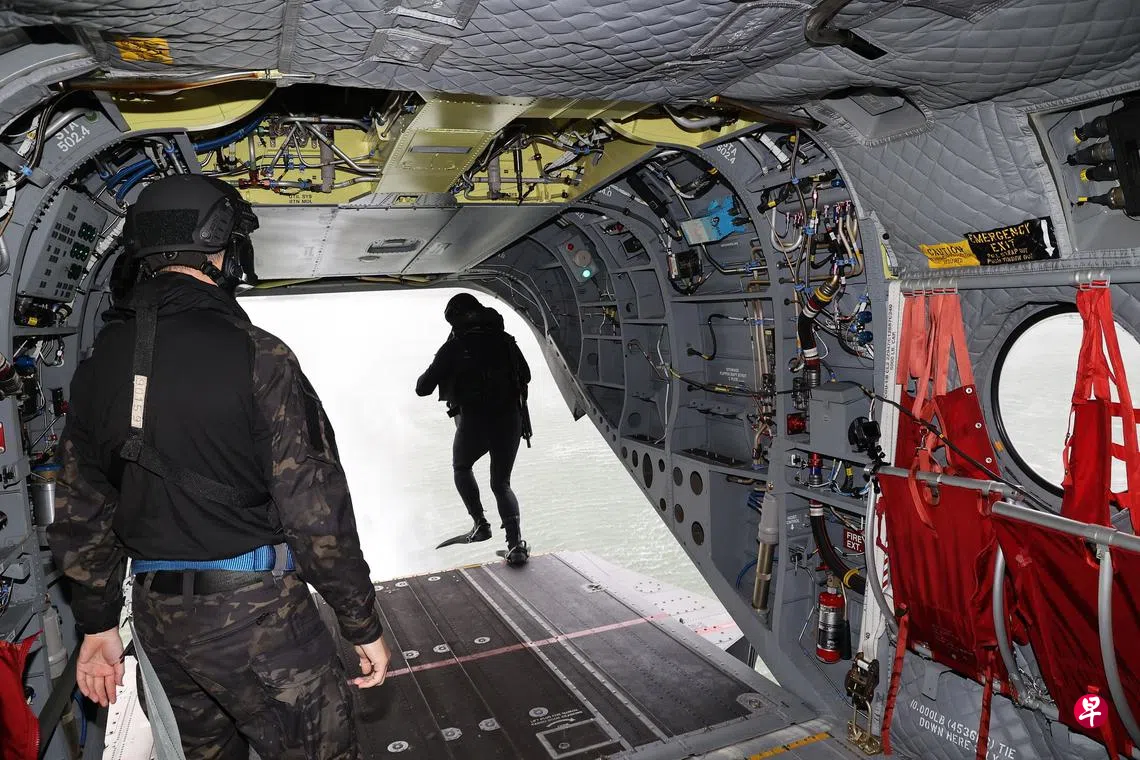 相比开阔的外海,直升机和几艘硬壳充气艇在滨海湾上演“追逐战”,难度更高,演出时每一分每一秒都要精准无误。