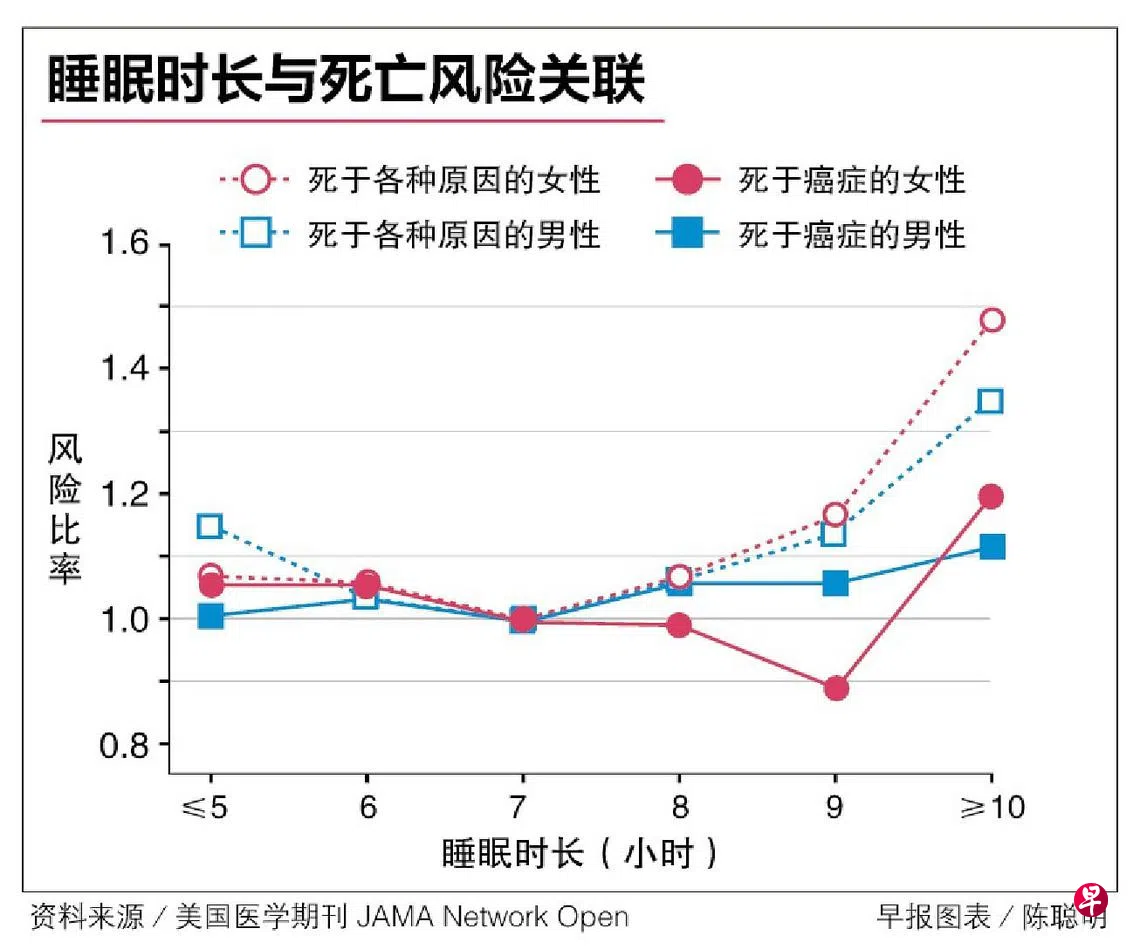 这项纵向研究由美国、日本、韩国和新加坡的专家团队进行,从1984年初至2002年底,收集来自新加坡、中国、日本和韩国超过32万名18岁以上成年人的睡眠时间数据。