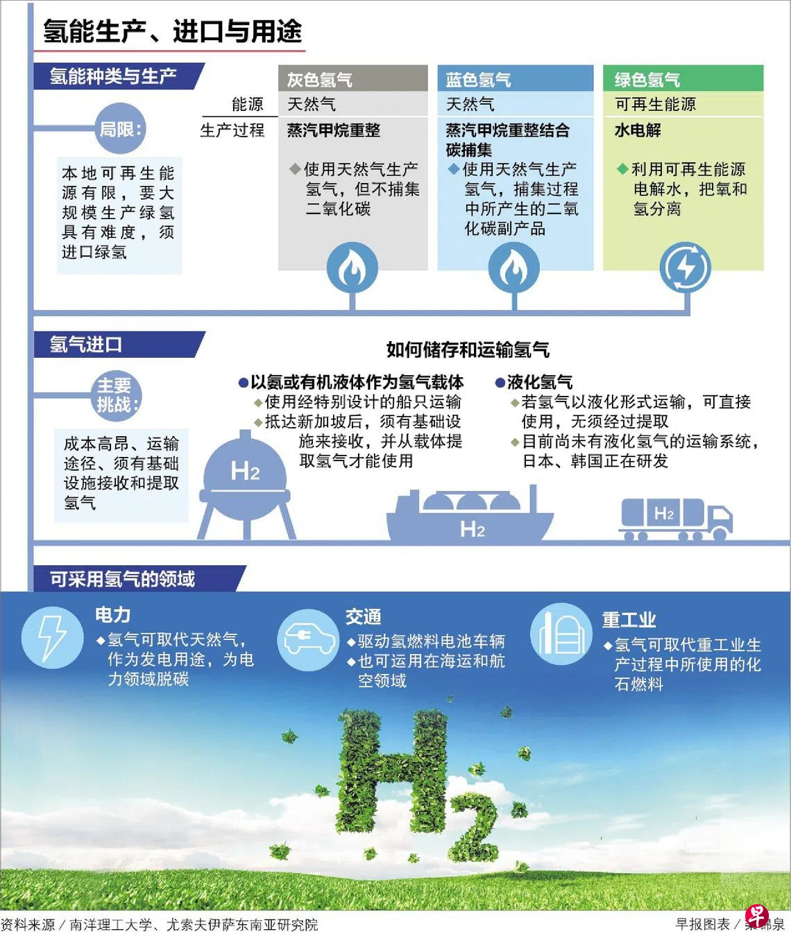 南洋理工大学化学与生物医学工程学院徐蓉教授说,新加坡的可再生能源与土地资源有限,而且碳捕集技术尚未成熟;有鉴于此,我国无论是生产绿色或蓝色氢气都具有挑战,须向其他氢气生产国进口低碳氢能。