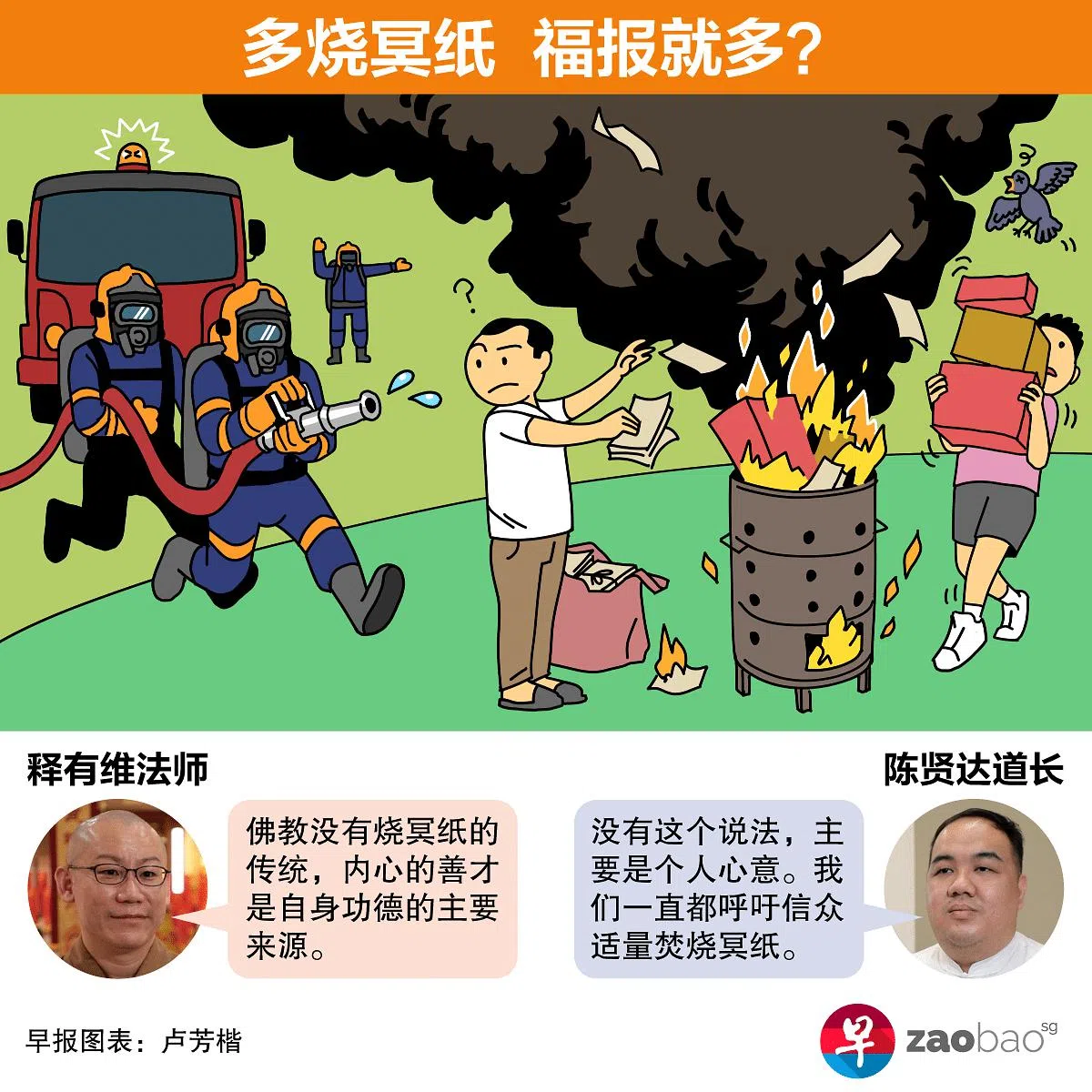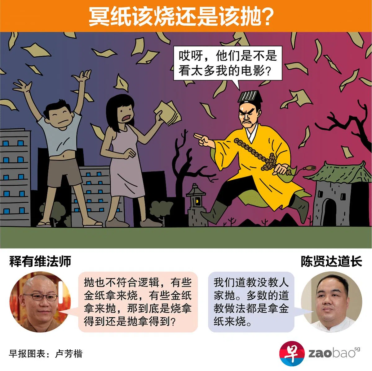 焚烧少量冥纸,会影响“积累的功德”吗?把祭祀供品收走,会否得罪鬼神?《联合早报》访问新加坡道教总会祈祷小组组长陈贤达道长,以及地藏林住持兼新加坡佛教总会教育组主任释有维法师,厘清民众对祭拜焚烧冥纸习俗存在的误区。