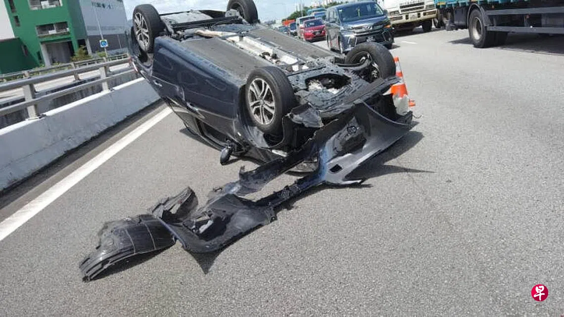 《新明日报》接获多名读者通报,指星期三(7月27日)下午2时在亚逸拉惹快速公路(AYE)通往大士方向,靠近裕廊渡头路(Jurong Pier Road)的出口处,发生上述车祸。