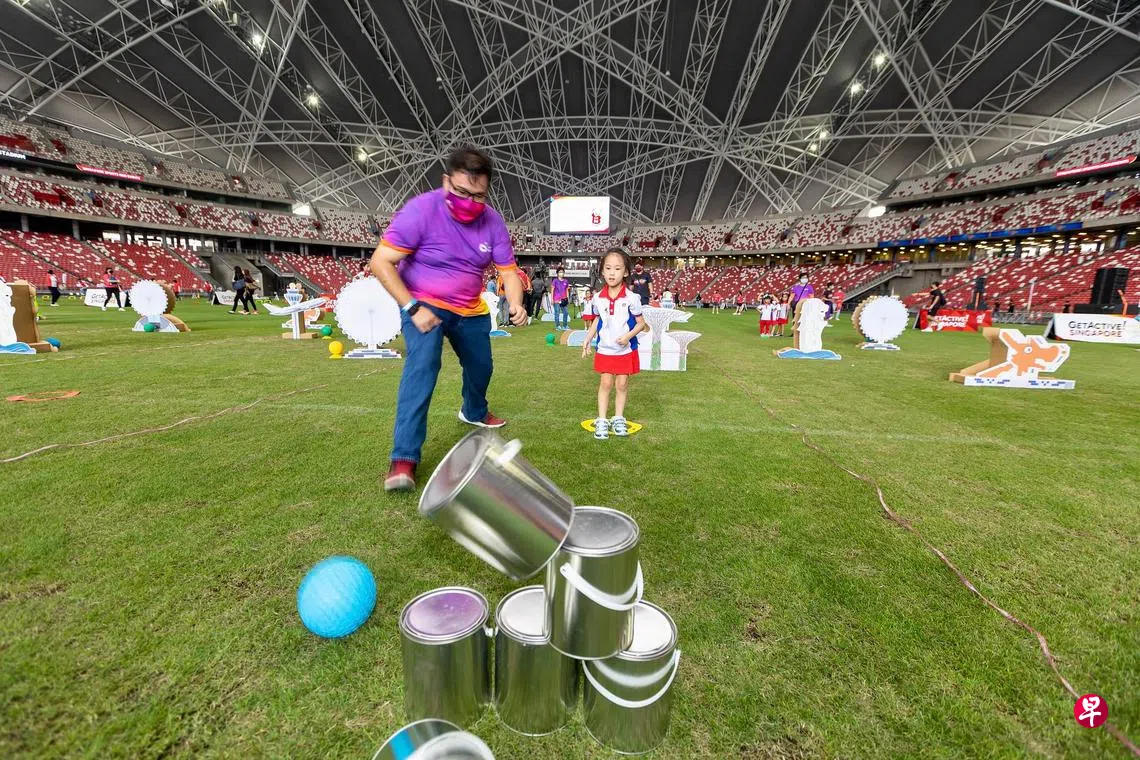 这是每年国庆期间举办的“动起来!新加坡”(GetActive! Singapore)体育嘉年华的Nurture Kids活动,旨在通过体育活动散播社区和爱国精神。