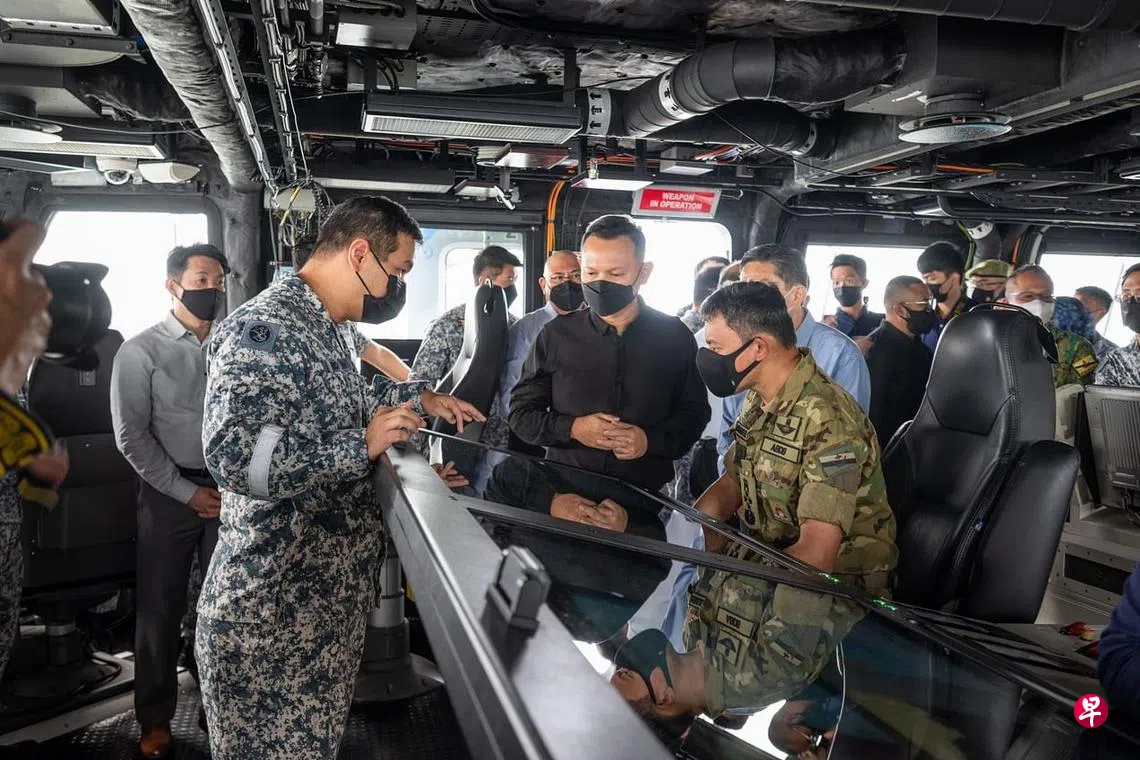 国防部兼人力部高级政务部长扎吉哈星期五(8月5日)招待文莱王储比拉赫参观樟宜海军基地。新加坡和文莱通过这次的访问,凸显两国之间密切和长远的国防关系。