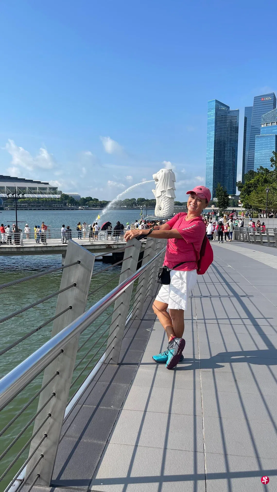 已迈入古稀之年的吴珠雅依旧热爱户外运动,今年特别选择以别具意义的方式为国家庆生。她身着红白服装步行10多公里,到鱼尾狮、政府大厦和克拉码头等22个新加坡地标打卡,为国家献上生日祝福。