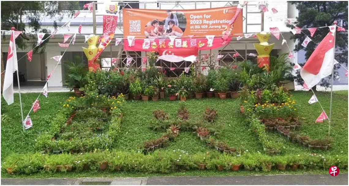 “当局往往会在我家组屋前的草地上摆放国旗,我就在这个基础上用盆栽加以装饰。”