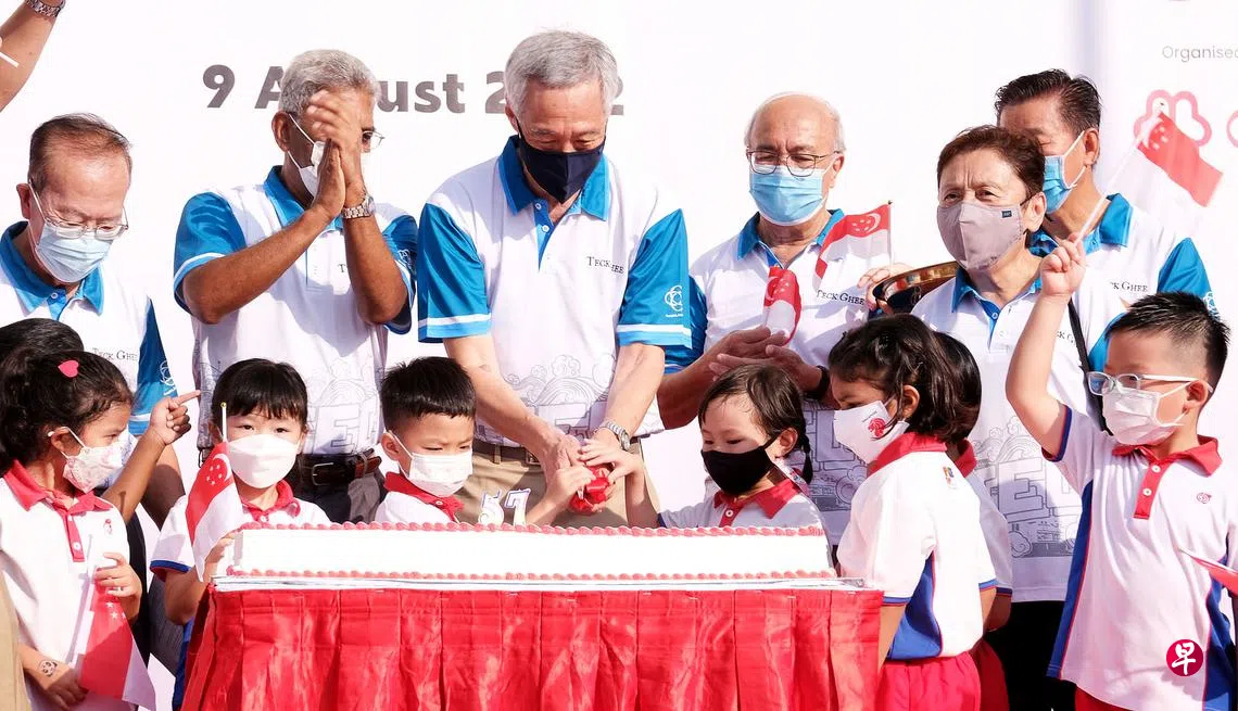 身为宏茂桥集选区议员的李显龙总理在国庆日早上,与超过1000名宏茂桥德义区居民一同庆祝国家57岁生日;工人党则走访他们管理和活跃走动的选区,分发国旗给居民。