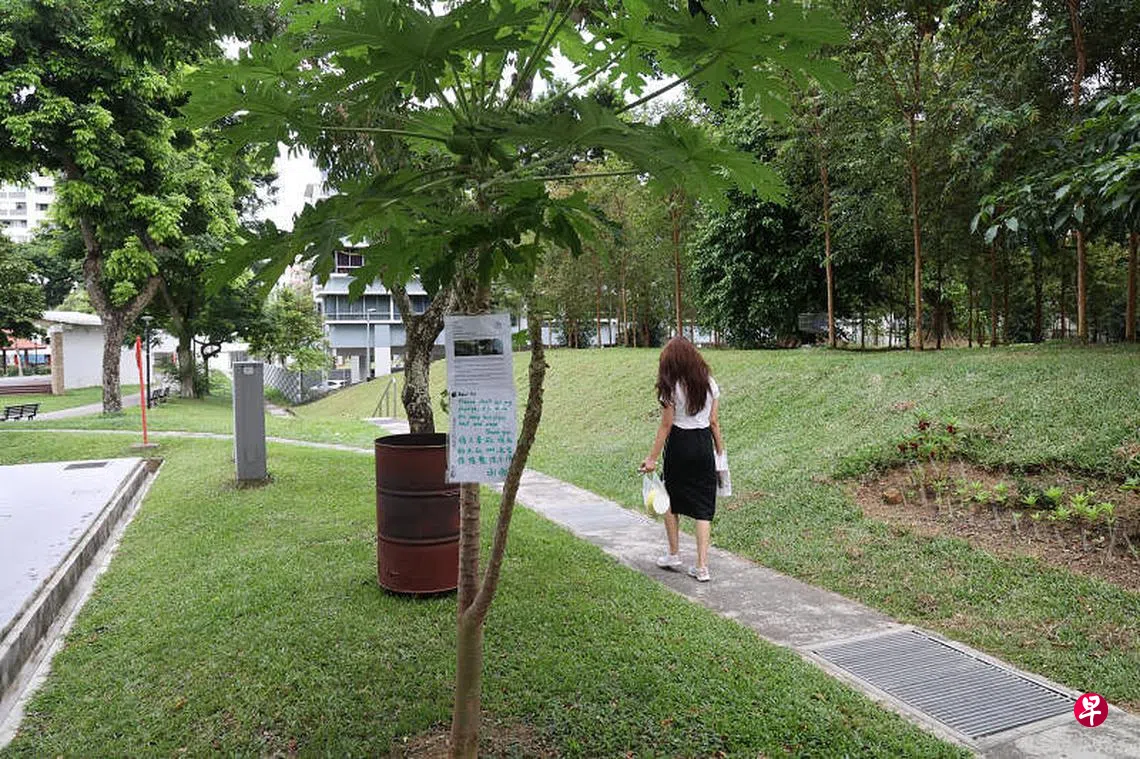 后港21街第237座组屋楼下有一棵木瓜树,平日里由几位爱好种植的居民浇水施肥,已照料了一年之久。