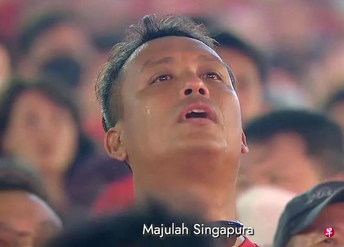 星期二晚(8月9日)直播的国庆庆典中,镜头捕捉到在滨海湾浮动舞台观看庆典的一名男观众,在唱起国歌时落泪,画面随后在网络热传。