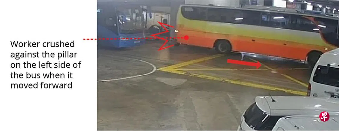 这起意外事故上星期三(8月3日)早上11时左右,地点在克兰芝一带惹兰南发(Jalan Lam Huat)的巴士转换站。根据初步调查,死者事发时站在一根柱子旁指挥巴士倒退停车。巴士司机倒车后,尝试向前行驶以摆正位置,过程中不知何故把站在巴士左后侧的工人撞到柱上,导致他被夹在巴士车尾和柱子之间。