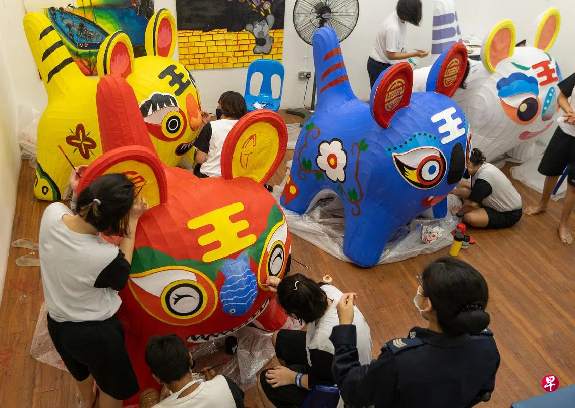 今年滨海花园庆中秋活动以“聚”(Reunion)为主题,两组社区的灯饰汇聚了各行各业人士的作品,其中一项“五虎临门”的灯笼与黄丝带项目合作,由19名女囚犯绘制完成,协助她们以艺术的形式,建立起个人与家庭和社会的连接。