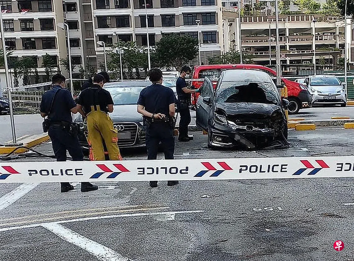 商业顾问到熟食中心吃完午餐去取车时,发现刚买了10天的二手轿车陷入火海,半辆车被烧成废铁。