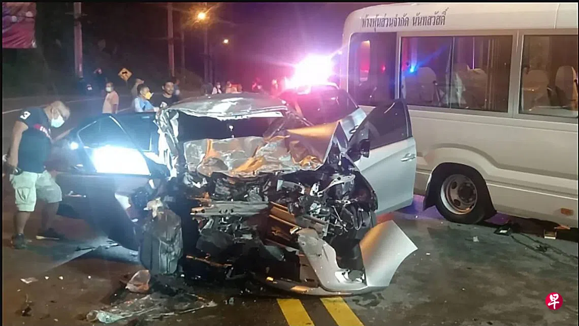 五名新加坡旅客到泰国普吉岛旅游,在自驾途中疑汽车失控与小型巴士相撞,驾车的21岁新加坡女子伤重不治,车上四人也受伤送院。