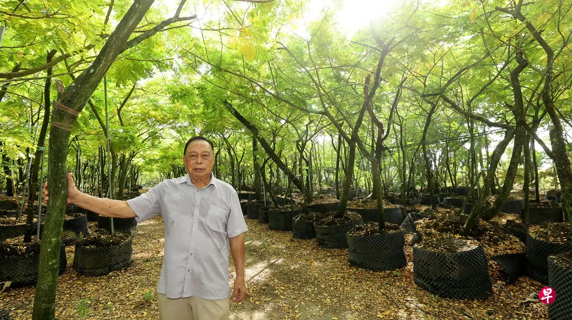 年近八旬的园主耕耘了半世纪,从1980年代起栽种本地常见的黄金雨树。随着园地租约到期将在本月底结束营业,为了不让近3000棵黄金雨树全遭铲平销毁,园主打算将树木捐赠新加坡国立大学和南洋理工大学,以感谢两所学府多年来栽培无数人才。