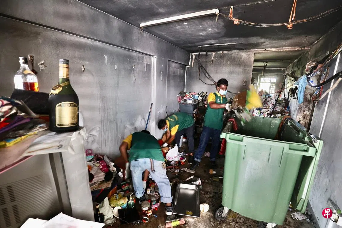 据观察,失火单位的客厅、房间和厨房都堆满杂物,市镇会人员灾后到场清理,杂物足足装满30个垃圾箱,重量相信超过三吨。市镇会随后调来垃圾车,将所有杂物载走。