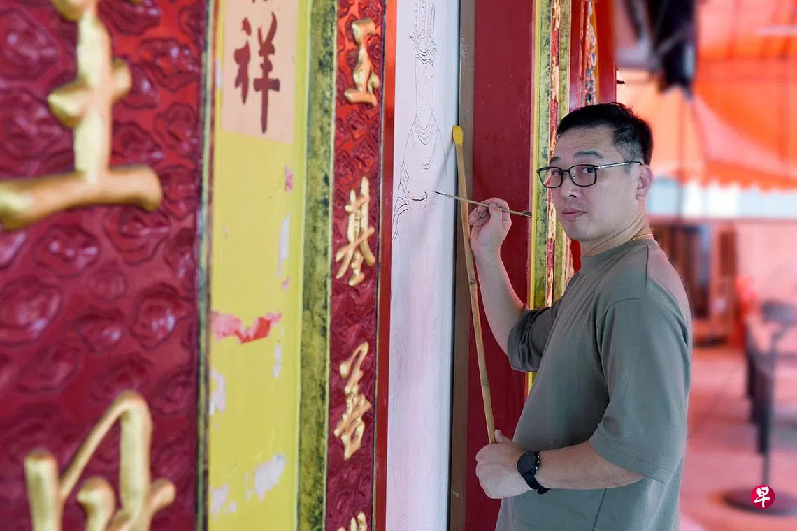 2008年,杨修权到台南出差,趁着休假日,见识到当地不少保留完整的古迹,感叹艺术之美外,也想效仿,保存新加坡的传统文化。时过境迁,手艺师傅对于“上门子弟”都愿倾囊相授,也从那时起,杨修权开始试着修复破损的老旧神像,迄今已有50尊神像在修补后焕然一新。