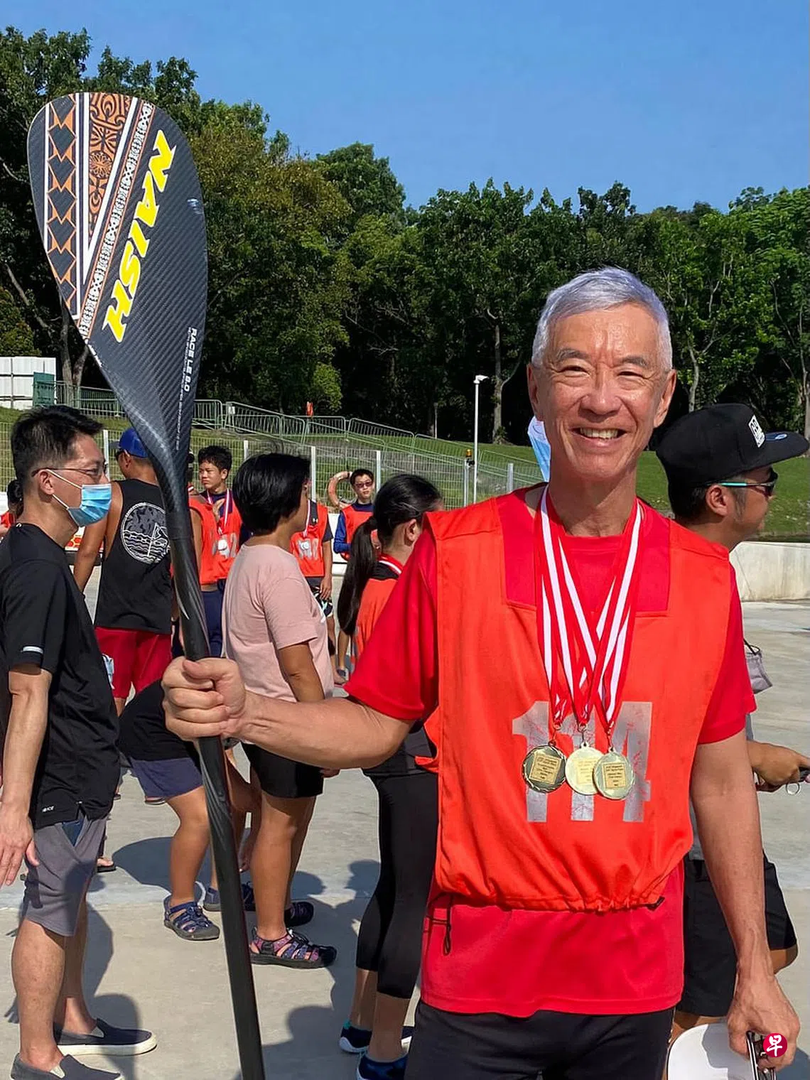 尽管学习立式划桨的时间不长,但源汝泰凭借对水上运动的热忱,在7月举办的社区赛事中赢得三面金牌。他认为,立式划桨比起划龙舟更容易上手,也没有那么耗体力,因此年长者要学会并不太难。