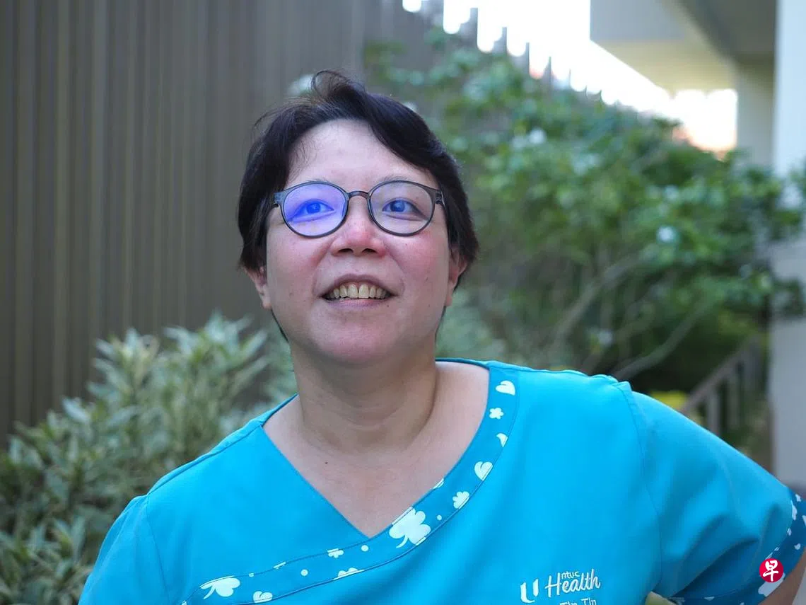 林珍珍(47岁)原本是青年协调员,一次听到有志成为护士的青年讲述实习时与病患互动的感人故事后,她在2009年转行成为陈笃生医院的心肺病房护士。也是从那时起,她渐渐发现自己的梦想是帮助有需要的人。