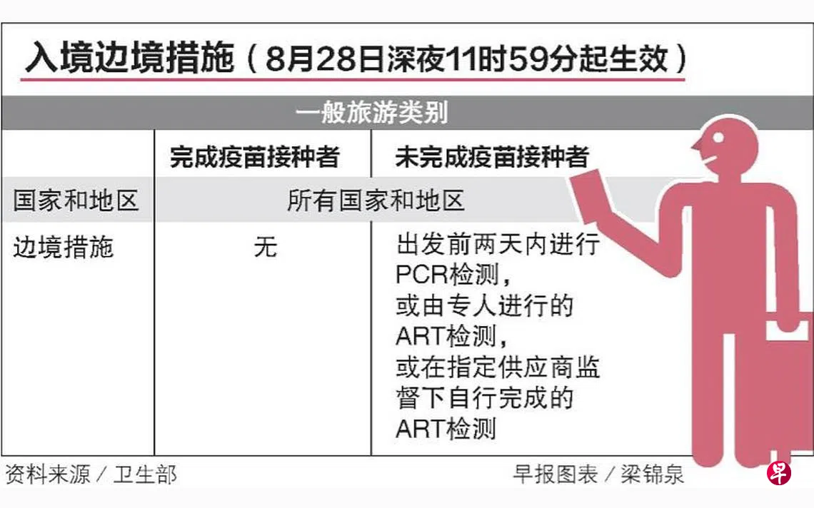 来临星期天(8月28日)深夜11时59分起,所有入境新加坡的旅客即使没有完成冠病疫苗接种,抵境后也不再须要履行七天居家通知,但仍须在行前两天内取得阴性检测证明。