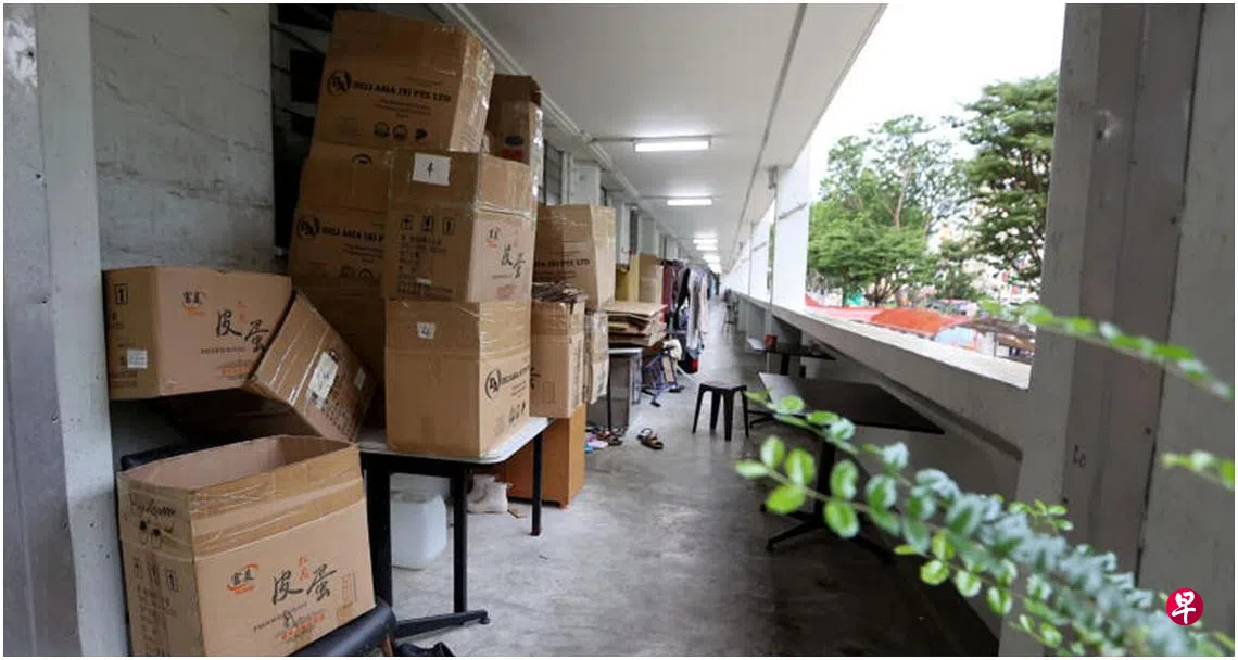 公众申诉,粥店在组屋楼下营业,却把拆箱后的纸皮囤积在楼上走廊挡道,纸箱甚至堆叠至天花板,恐成隐患。