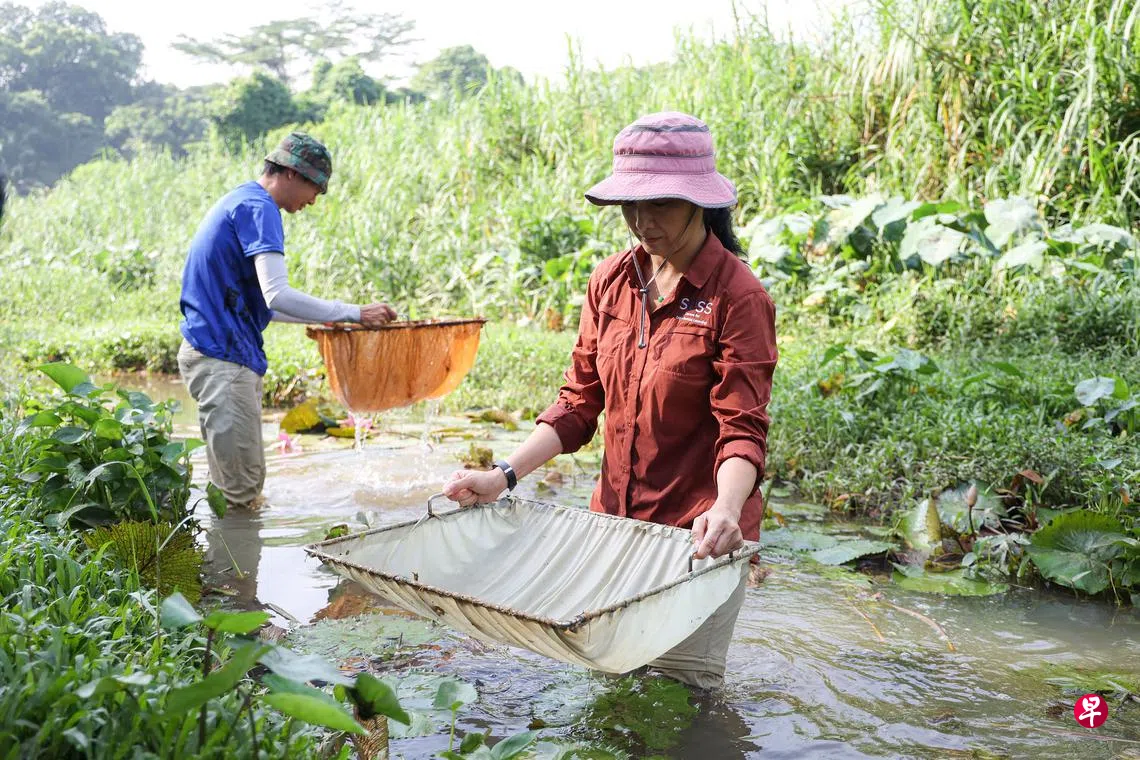 星期六(8月27日)早上,一群学生义工和金文泰—乌鲁班丹自然绿道之友的成员,从溪流仔细调查这一带的生态面貌,一一记载水栖动物及河岸植物。调查结果将为正式的环境影响评估提供补充资料。(李冠卫摄)