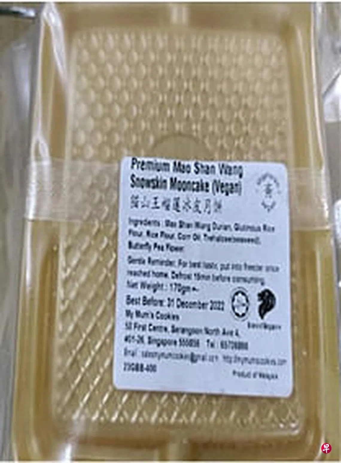 大肠杆菌超标 一款猫山王冰皮月饼须下架订户赠阅文章一款猫山王榴梿冰皮月饼因大肠杆菌含量超标,被新加坡食品局下令召回。食品局星期一(8月29日)发文告说,当局在My Mum's Cookies品牌的猫山王榴梿冰皮月饼中发现过量的大肠杆菌(E. Coli),超出了新加坡食品条例规定即食(Ready-To-Eat)食品可含的微生物标准。食品局已指示进口商Easy Mix Pte Ltd召回受影响产品,召回工作正在进行中。新加坡食品局月饼上一篇不惧挑战擦亮前程下一篇公园局加强检修树倒事故骤减八成购买此文章