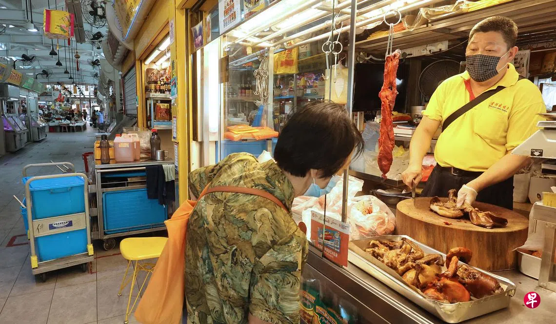 新加坡食品局星期四(9月8日)更新8月24日发出的指示,在湿巴刹只有处理熟食和即食(Ready-To-Eat)食品如烧肉的摊贩仍须戴口罩或防飞沫口罩(spit guard)。