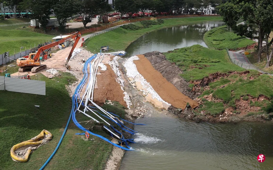 当局下来将安装板桩以进一步巩固斜坡,然后全面修补河道及公园连道的损坏部分。