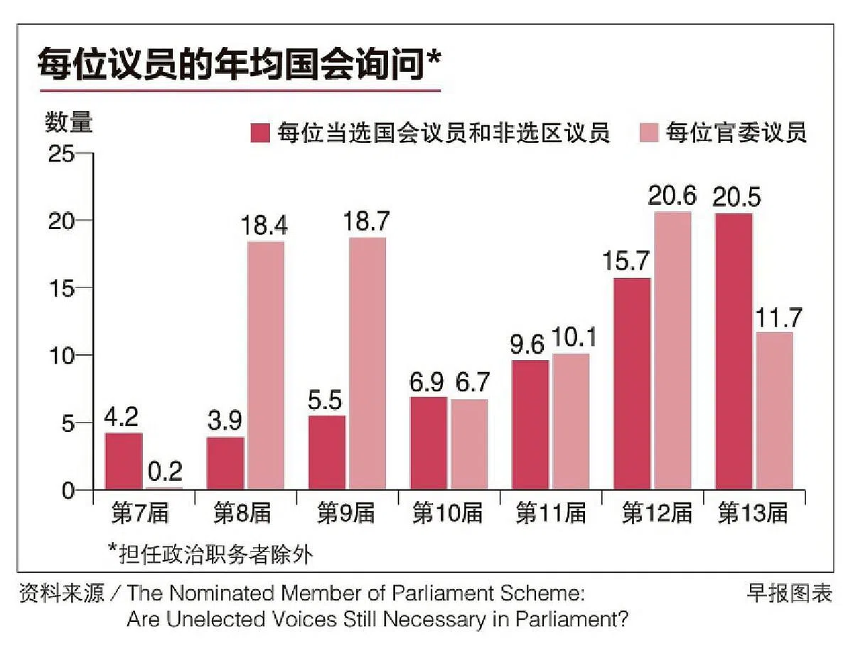 官委议员制度1990年启动至今有97名新加坡人受委,他们32年来在国会发表了约2000个演讲、3000个国会询问。数据显示,七届国会当中,有四届的官委议员一年内提出的国会询问,甚至比国会议员和非选区议员更多。