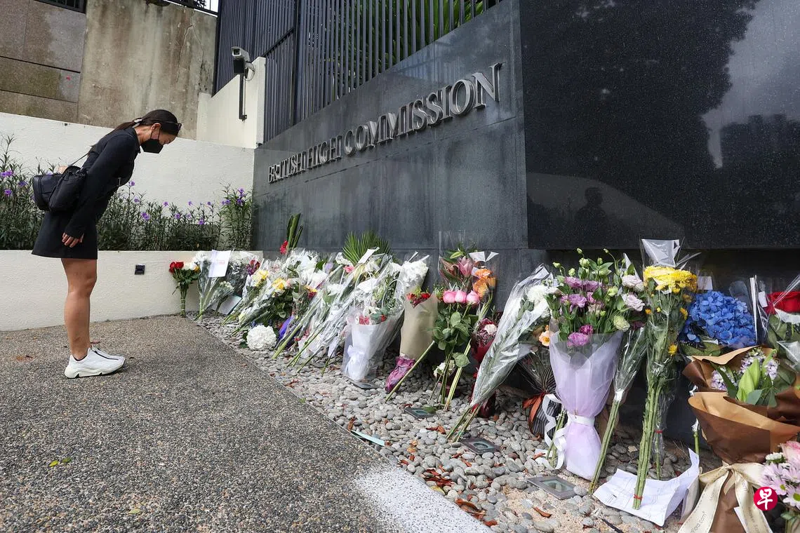英国驻新加坡最高专员公署开放给公众在吊唁书上留言首日,三小时内有至少100人留言追思已故的英国女王伊丽莎白二世。