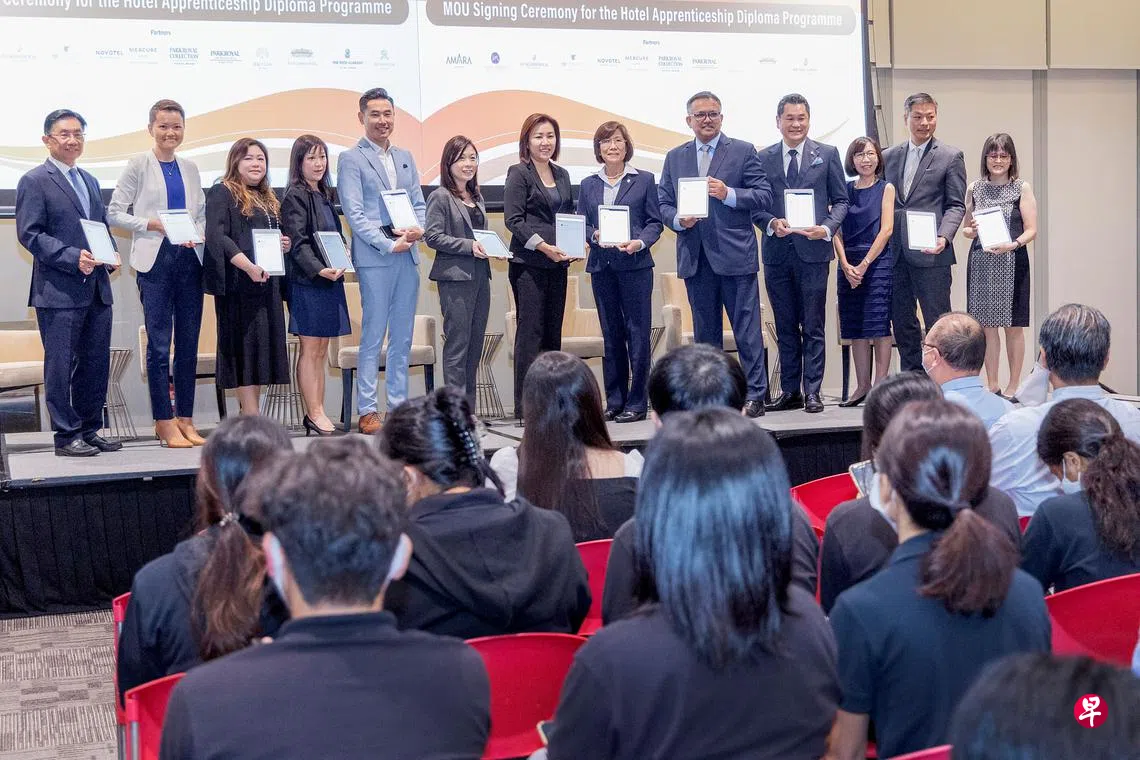 这项新计划由新加坡酒店协会酒店与旅游管理学院(SHATEC)与本地酒店业者联合推出。学院星期一(9月12日)与全国职工总会就业与培训中心(e2i)及12家酒店签署了谅解备忘录。