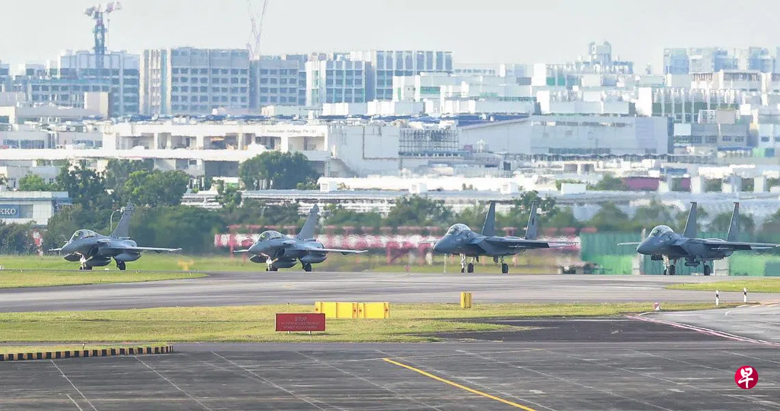 我国两架F15-SG战机与法国两架阵风战机星期四(9月15日)从巴耶利峇空军基地起飞,到南中国海南部的国际空域,模拟敌我对抗的演练行动。