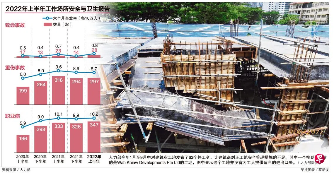 今年上半年的工伤事故总数虽减少,但致命工伤事故却有28起,比去年下半年多出一倍。今年首六个月的工伤死亡率,也比去年上半年和下半年都来得高。