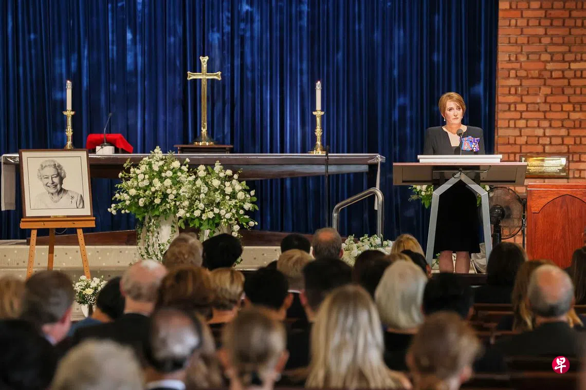 英国驻新加坡最高专员公署和圣乔治教堂(Saint George's Church)星期六(9月17日)举办感恩礼拜,超过200人出席,悼念上周逝世的英国女王伊丽莎白二世。这当中包括前新加坡驻英国最高专员符祺霞,以及来自加拿大、澳大利亚和新西兰的代表。英国驻新加坡最高专员欧文(Kara Owen)在礼拜上谈到了女王的一些事迹,并忆述自己2019年上任前曾被女王召见的点滴。