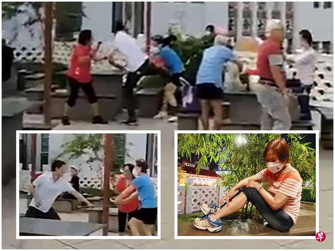 疑为抢“地盘”,30多岁男子在牛车水天桥花园攻击前来唱歌跳舞的七旬阿嫂,还用垃圾钳打她,甚至踹她肚子,惊动警方前来调查,男子当场被捕。