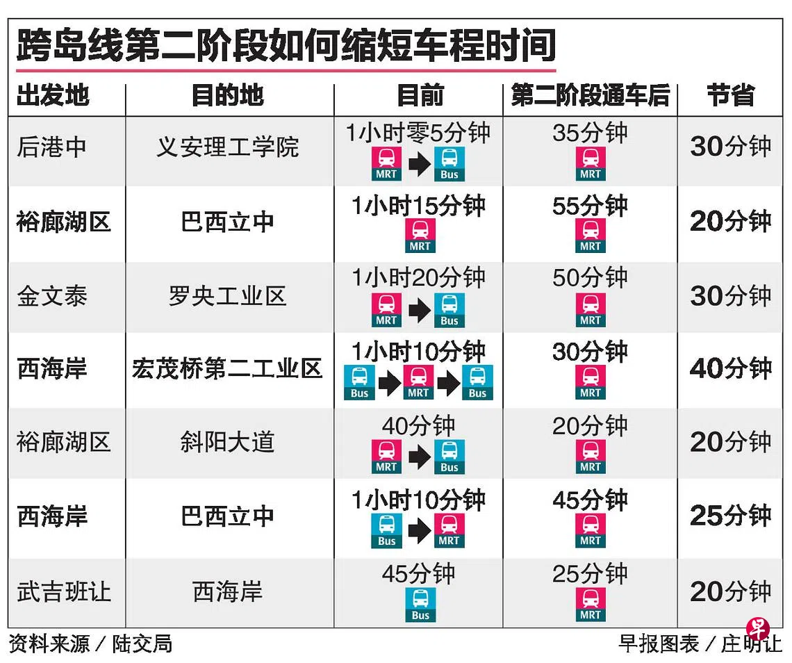 交通部长易华仁星期二(9月20日)公布了跨岛线第二阶段的具体路线和地铁站位置,六个地铁站是马城、阿尔柏王园、马裕、金文泰、西海岸以及裕廊湖区。